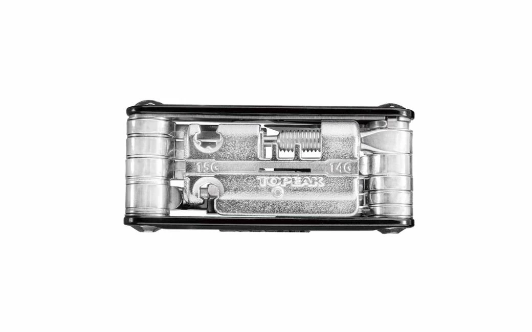 Mini-outil de précision de qualité professionnelle à 20 fonctions avec un corps en alliage forgé élégant. Outil de chaîne intégré avec outil de maillon principal intégré pour retirer les chaînes de type maillon principal se replie pour un profil simplifié. Corps en alliage forgé compact. Parfait pour toute réparation de route ou de sentier.