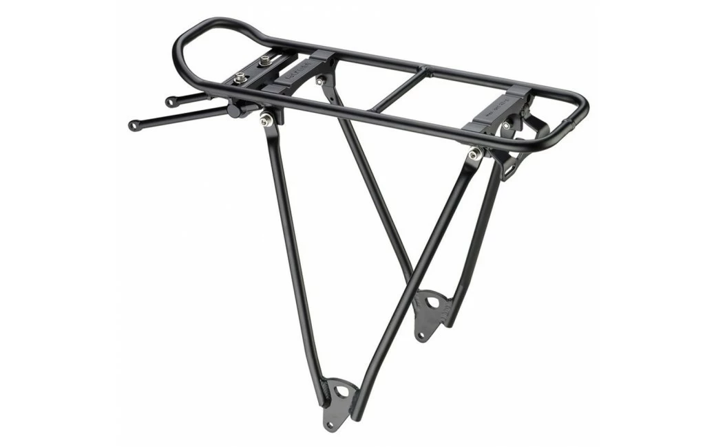 Porte-bagage pour vélo enfant. Le Racktime Folditfix permet l’installation de sacoche de vélo type Ortlieb ou Vaude. C’est un porte-bagage aluminium léger mais solide. Permet au cycliste qui commence à voyager de prendre une paire de sacoche avant sur l’arrière du vélo.