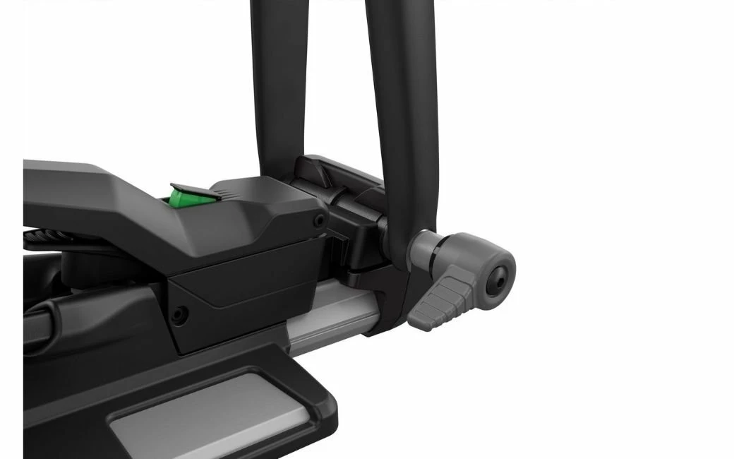 - Le vélo glisse dans les rainures du porte-vélos sur l’adaptateur de fourche et émet un signal lorsqu’il est en place,
