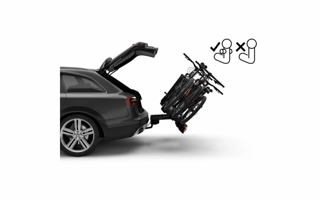 - Accès aisé au coffre, même avec les vélos fixés, grâce à la pédale de basculement pratique
