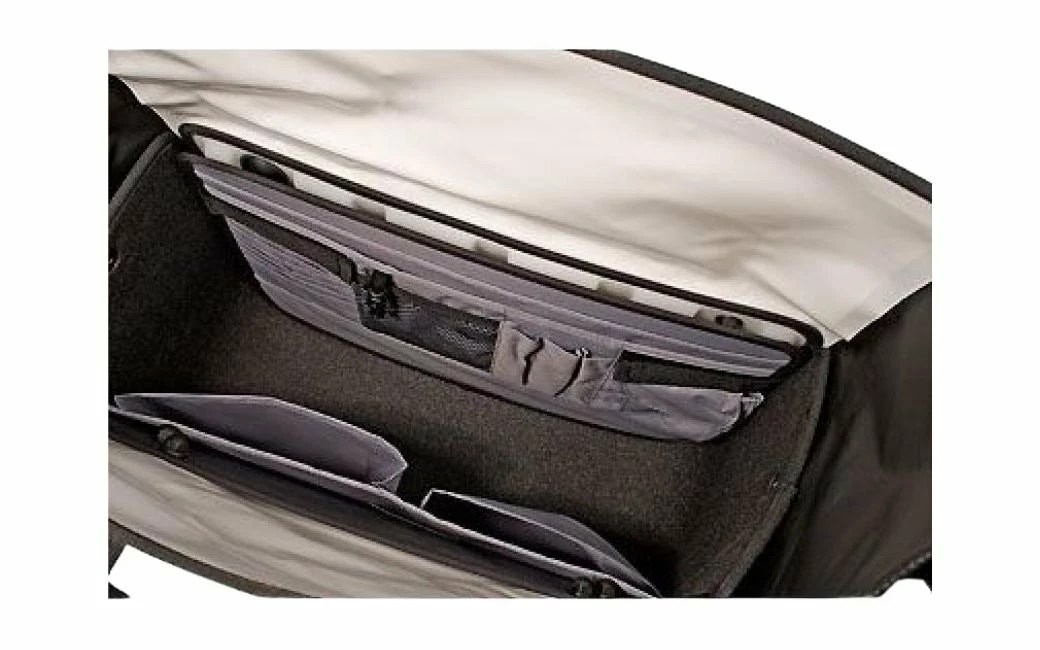 La sacoche-cartable étanche pour vélo, à fermeture par enroulement, peut se fixer à droite comme à gauche sur le porte-bagages et s’accroche ou se décroche en un tour de main. La sacoche Office-Bag offre suffisamment d’espace pour y ranger deux grands classeurs DIN A4 (taille L), les stylos, le mobile & Co. Elle est également parfaitement adaptée au transport de votre ordinateur portable, grâce à son insert spécial matelassé (accessoire vendu séparément). Deux éléments en « matériau 3M » ultra réfléchissant et le logo ORTLIEB réfléchissant (pas pour la variante au coloris argent) sur le devant de la sacoche garantissent d’être vu en cas de mauvaise visibilité ou dans l’obscurité. Un protège-arête au dos de la sacoche et des petits patins garantissent protection et bonne stabilité. La bandoulière matelassée assure le port confortable recherché.